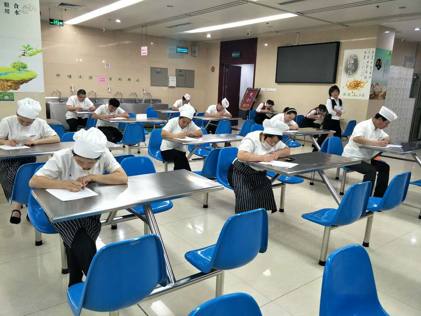 業(yè)務(wù)技能考核前,對全體人員進(jìn)行了理論測試。平時大家舞刀、擺弄餐具的手,答起題了也毫不含糊,絕大多數(shù)對題目內(nèi)容信手拈來充滿自信。測試結(jié)束時,參考人員紛紛表示下去后還要加強(qiáng)學(xué)習(xí),確保理論更好地聯(lián)系實踐、促進(jìn)技能提高。